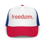 Stand out from the crowd with our patriotic “FREED0M” Trucker Hat, where the “0” is boldly replaced by the Unshakled logo in striking red font. This eye-catching red, white, and blue design makes a powerful statement about digital liberty while showcasing your American spirit.